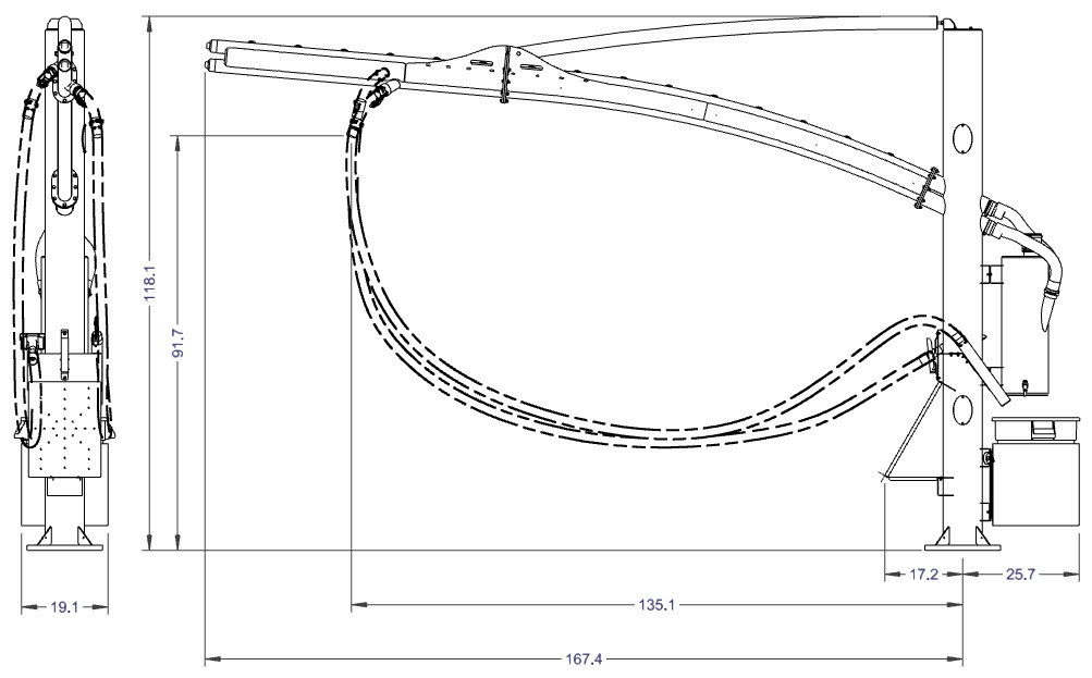 - 16.75” x 16.75” mounting plate (1” holes at 14”x14”)
