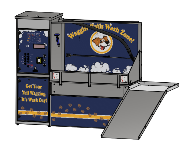 - Standard selectable options: rinse, oatmeal shampoo, tearless shampoo, conditioner, pet deodorizer, flea and tick shampoo, low and high speed blower, and tub disinfectant